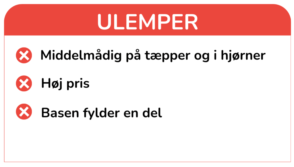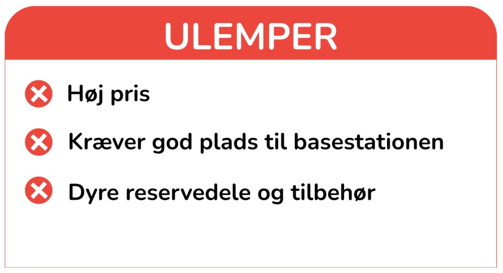 Selvom Dreame X50 Ultra byder på en imponerende teknologi og næsten fuldautomatiseret rengøring, har den også en høj pris, og basestationen kræver god plads.